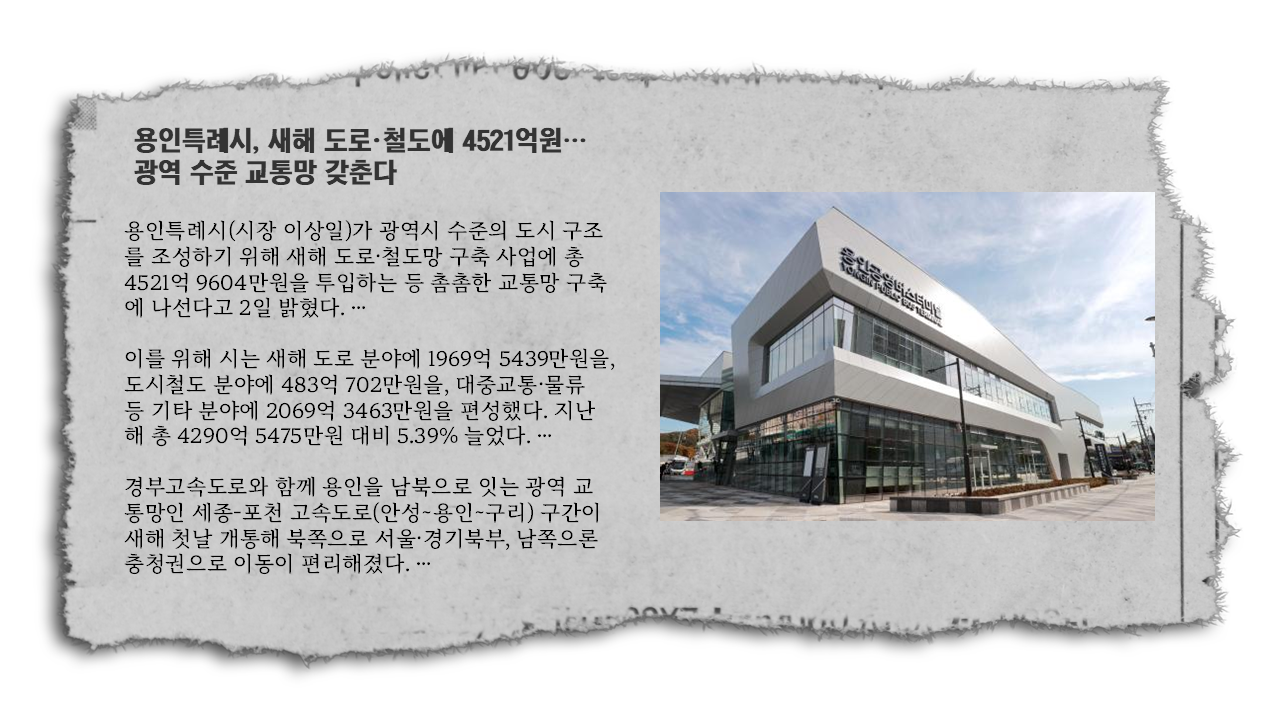 4차 철도망 구축 계획과 같은 국토교통부 발표를 꾸준히 지켜봐야 합니다. 평택에서 출발해 이천의 부발로 가는 평택부발선 계획이 잡혀혀있는데, 이를 용인 반도체 클러스터와 직접 연결하자는 논의가 이뤄지고 있습니다. 아직 확정된 건 아니지만, 용인시가 계속해서 정부에 요구를 하고 있고, 추후 상당히 많은 근로자가 출퇴근해야 하므로 신빙성 있는 얘기입니다.