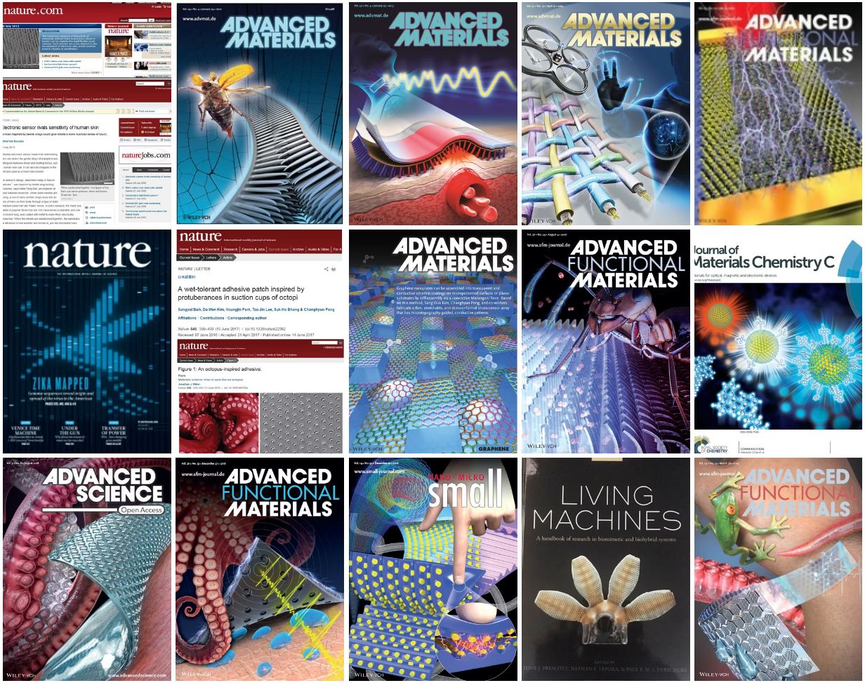 전국에 내로라하는 자연모사를 연구하는 교수 10명에게 메일을 보냈다. 박사 과정을 하면서 동시에 사업화하고 싶다는 뜻을 미리 밝혔다. “유일하게 손을 내밀어준 분이 성균관대 화학공학과 방창현 교수님입니다. 마침 연구 중이던 문어 흡반 구조의 점착 패치를 사업화할 구상을 하고 계셨어요. 수중 환경에서도 어디든 잘 달라붙는 성질을 활용해, 기존 화학점착제를 물리점착제로 대체하자는 취지의 연구였죠. 관련 논문은 2017년 네이처지 표지 논문으로 게재되기도 했습니다.”