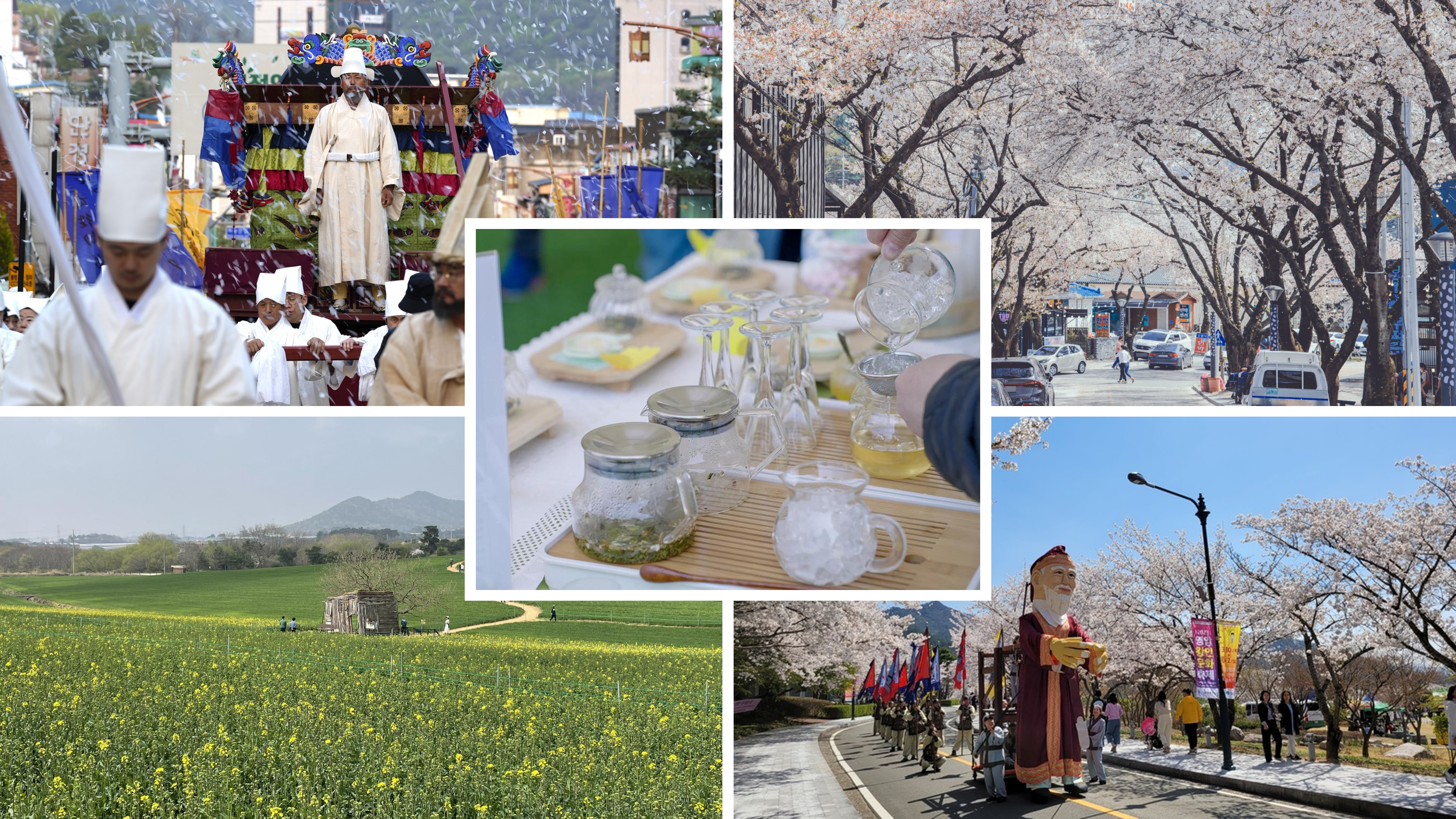 세 번째는 전북 고창군 청보리밭축제입니다. 약 23만평의 초록빛 벌판이 매력적입니다. 네 번째 전남 영암군 왕인문화축제는 문체부가 선정한 대표 문화관광축제입니다. 마지막으로 경남 하동군 야생차 문화축제에서는 찻잎 따기와 족욕 체험을 할 수 있습니다.