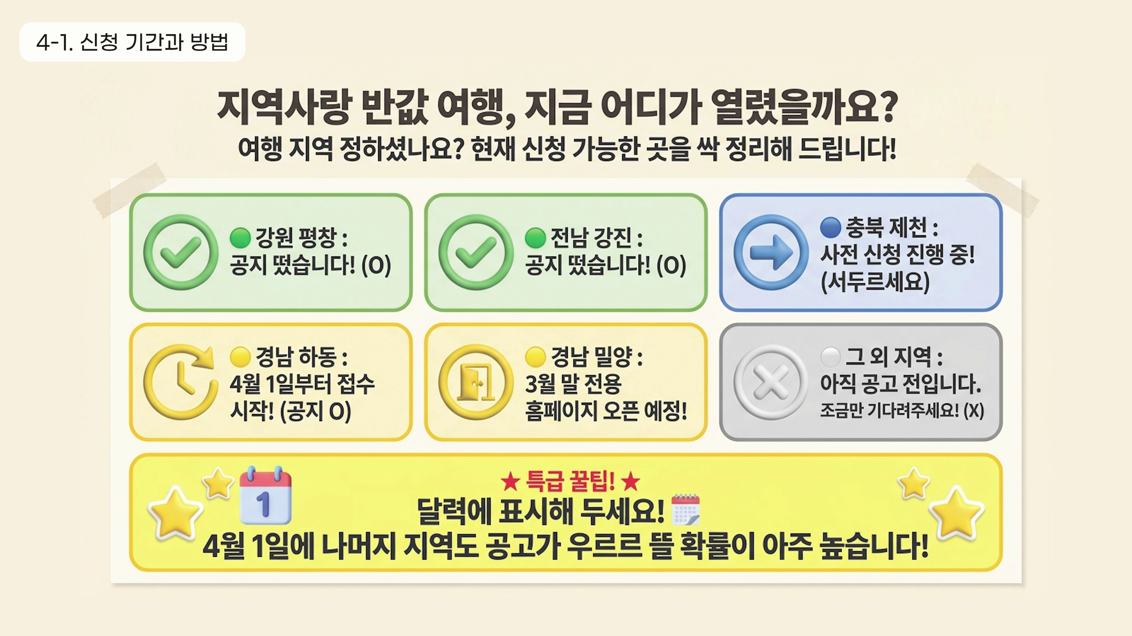 봄나들이 가기 좋은 계절이 돌아왔습니다. 여행 경비의 50%를 현금처럼 쓰는 상품권으로 돌려받을 수 있는 지원금을 소개합니다. 유튜브 채널 ‘엄마아빠 정보독립시대’에서 여행비를 아끼며 떠나는 ‘지역 사랑 휴가 지원’ 사업과 봄나들이 가기 좋은 지역 축제 5곳을 정리했습니다. ‘엄마아빠 정보독립시대’는 부모 세대를 위한 디지털·생활 정보를 쏙쏙 뽑아 전달하는 프로그램입니다.