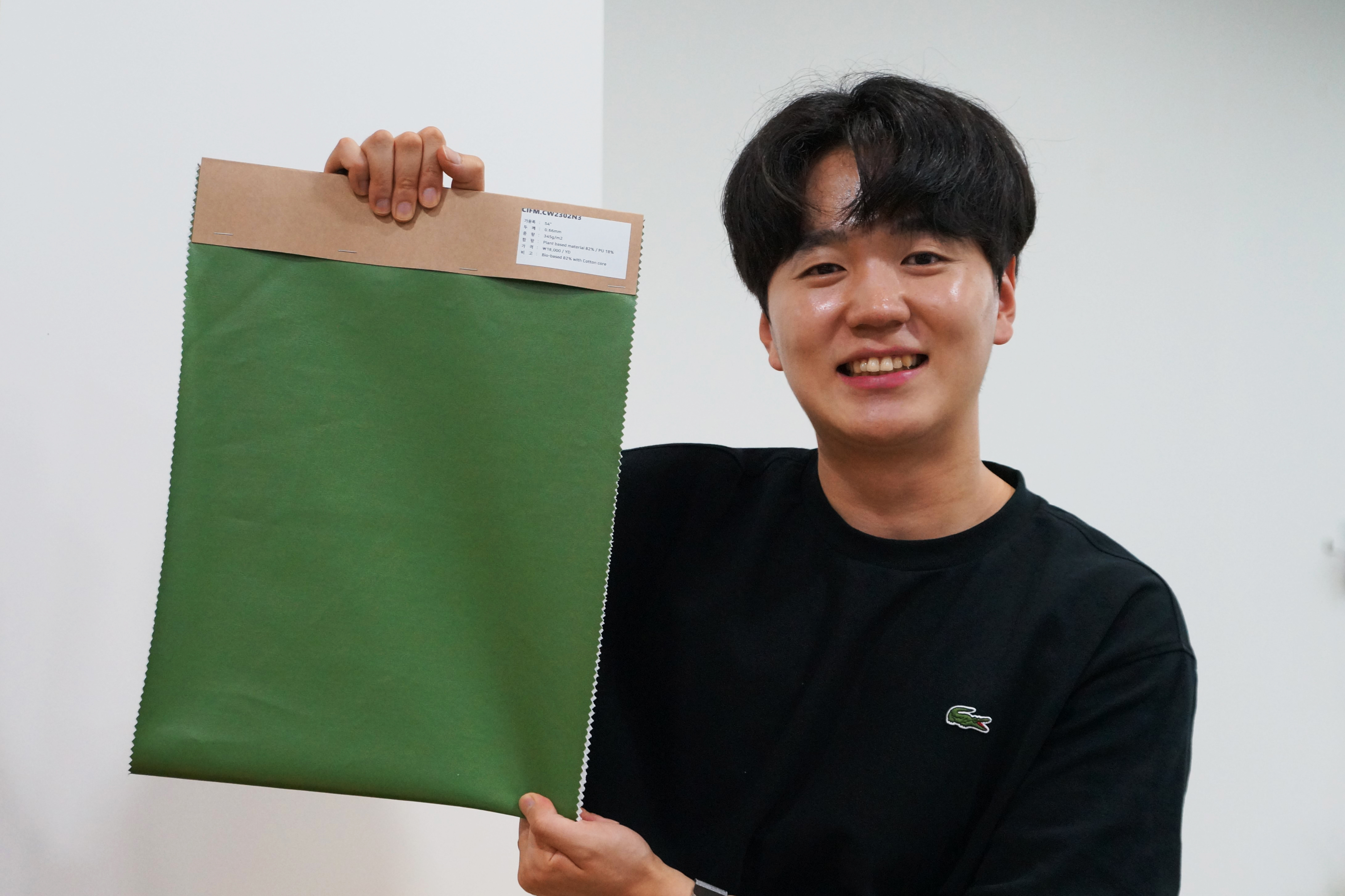 사업 아이템을 찾다 발견한 건 ‘식물성 가죽 시장’이다. “천연 가죽은 가공 공정 중 중금속인 ‘크롬’을 사용하기 때문에 토양 오염을 야기합니다. 가축 사육 과정에서 온실가스도 발생하죠. 2021년에는 유럽연합(EU)이 ‘산림파괴와 연관이 없다는 사실이 인증된 가죽 제품만 수입·생산하겠다’는 발표를 접했습니다. 앞으로 식물성 가죽 시장이 성장할 거라는 확신이 생겼죠.”
