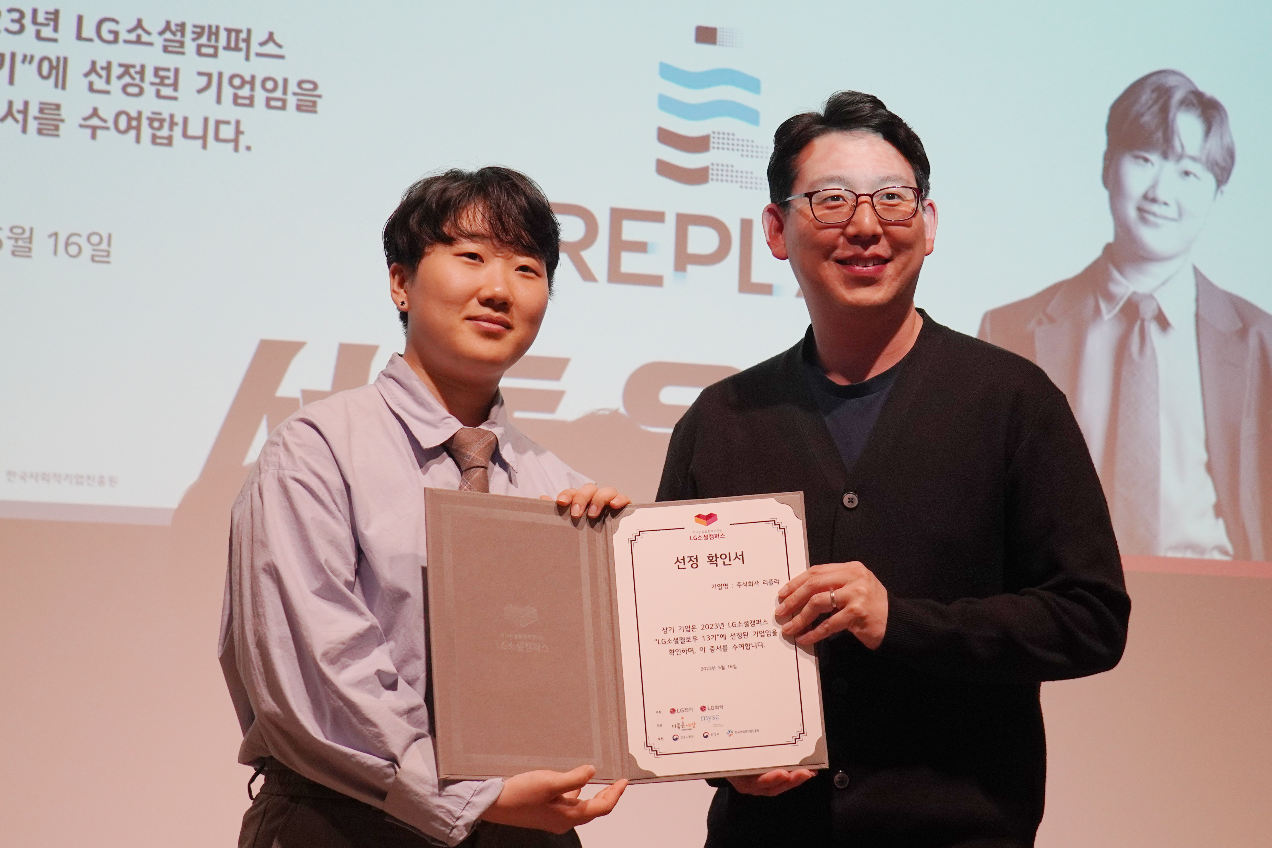 젊은 두 대표가 아이디어를 빠르게 제품화한 배경에는 ‘믿는 구석’이 있었다. LG전자와 LG화학이다. LG전자·LG화학이 운영하는 LG소셜캠퍼스는 기후환경 분야 사회적경제기업 지원 프로그램 ‘LG소셜펠로우’를 13년째 운영하고 있다. 비즈니스를 통해 환경문제를 해결하고 있는 스타트업을 다방면으로 돕는다.