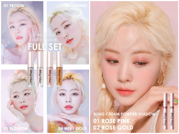 블링글로우의 글리터 라이너(왼쪽)과 크림 파우더 섀도우 홍보 이미지. 메이크업 아티스트 이슬 실장 본인이 모델이다.